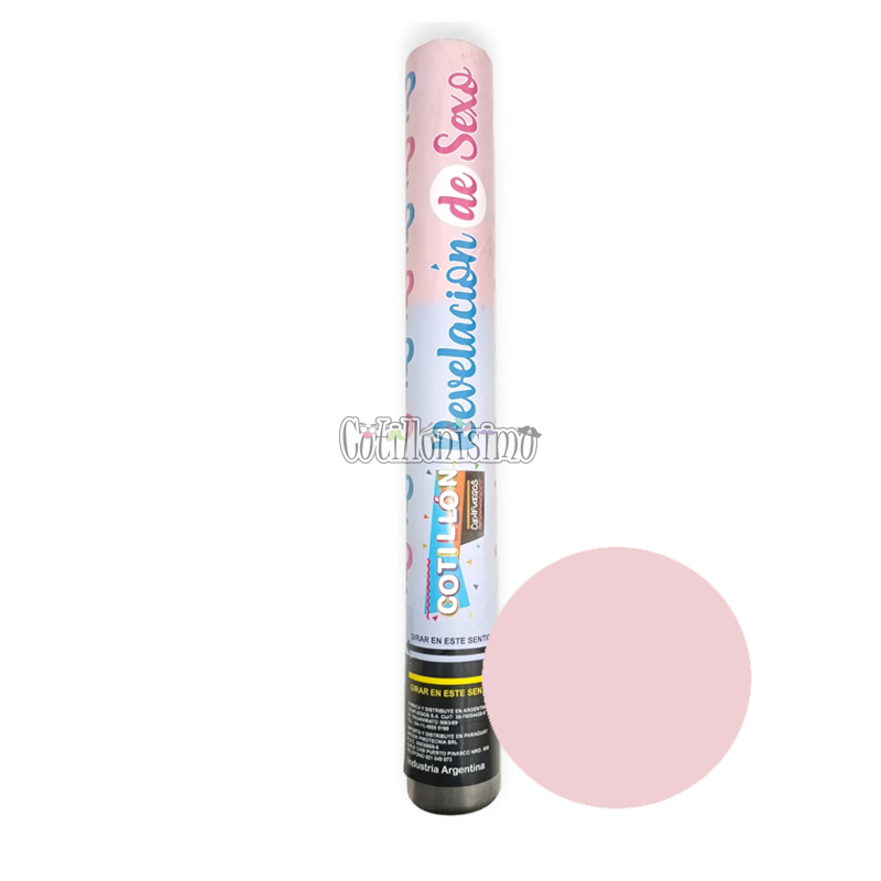 Cañón Lanzapapeles Revelación de Genero Nena CienFuegos Material: Papelitos rectangulares. Medida: 40 cm aprox. Color: Rosa Fácil de utilizar. Articulo de Cotillón ideal para Revelación de Sexo