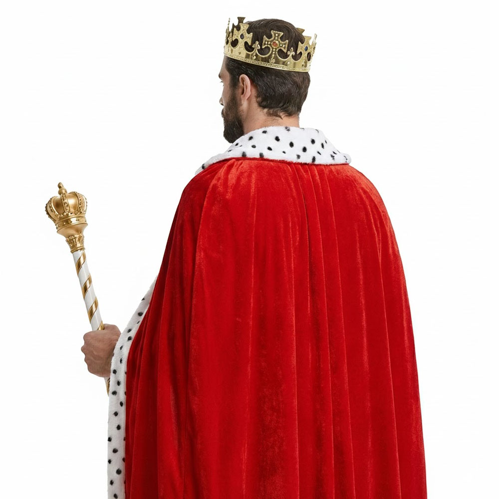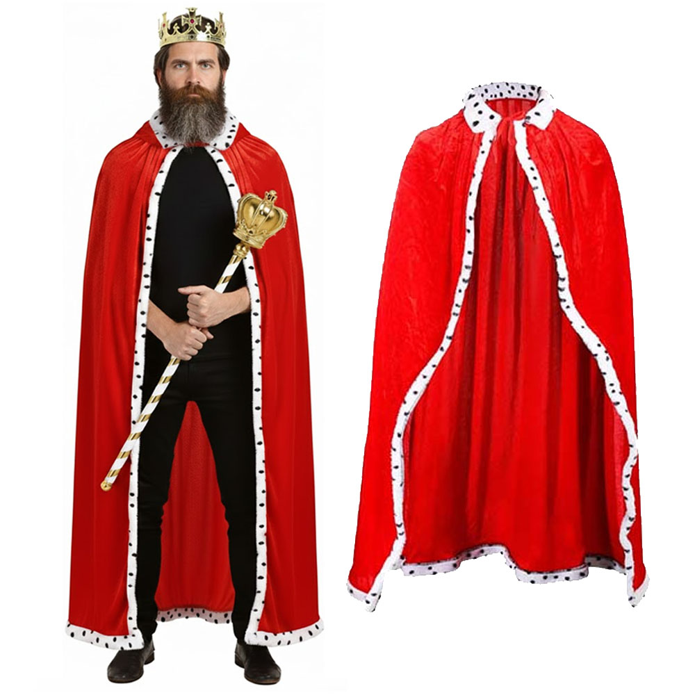 Capa de Rey Medieval Color Rojo con Blanco y Negro Talle Unico NO INCLUYE CORONA NI CETRO Medidas aproximadas: 120 cm