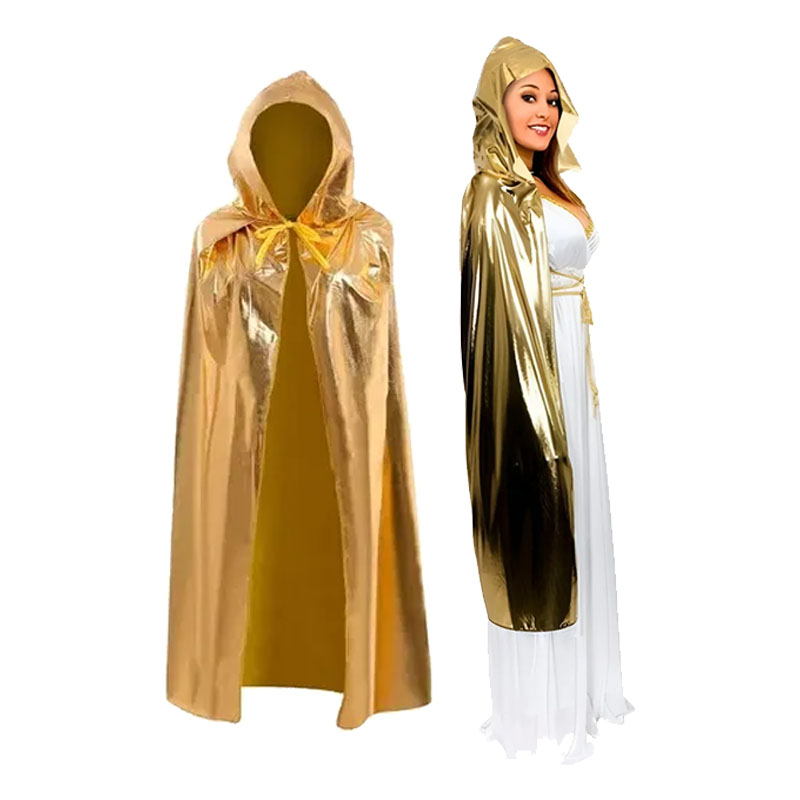 Capa con Capucha Disfraz Color Dorado / Oro Talle Único Medida aproximada: 130 cm