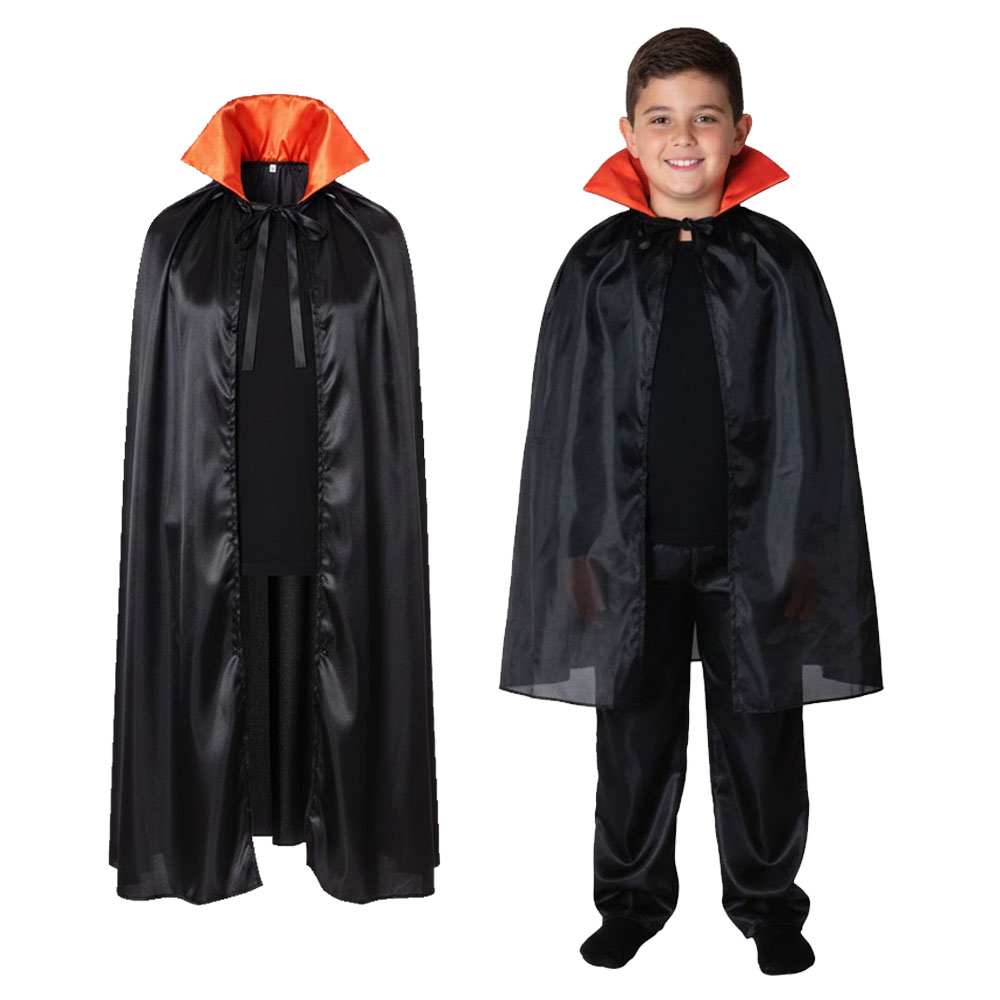Capa Disfraz Conde Dracula Vampiro con Cuello Rojo Interno para Niño TALLE UNICO