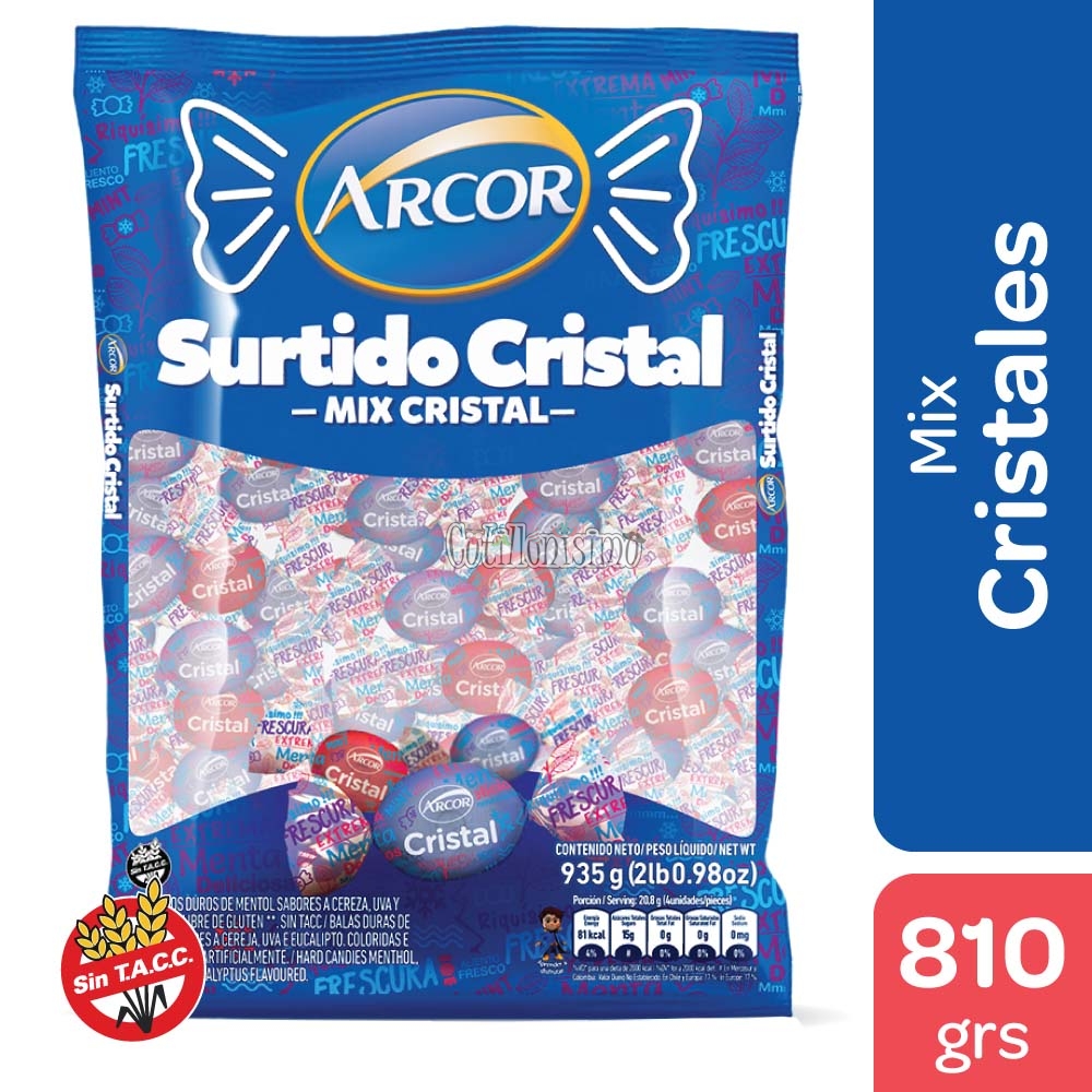 Caramelo Arcor Surtido CRISTAL MIX 810 Grs SIN TACC 180u