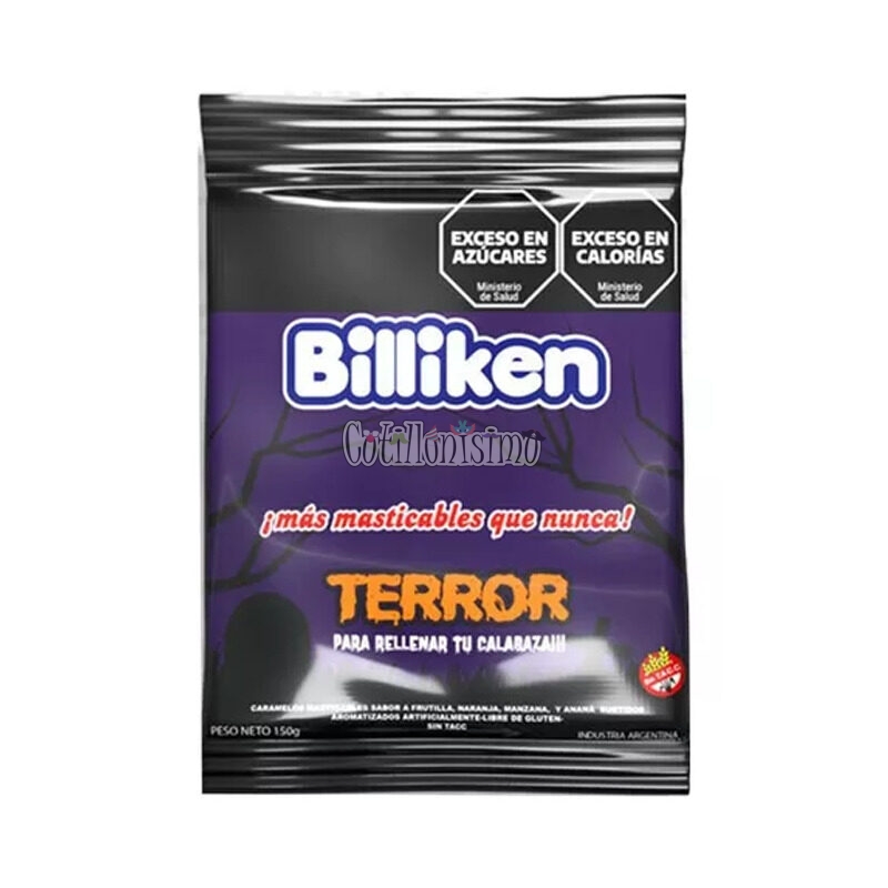 Caramelo Masticable BILLIKEN TERROR Halloween x150 gramos Sabores: Frutilla, Naranja, Manzana y Ananá Sin TACC Libre de Gluten