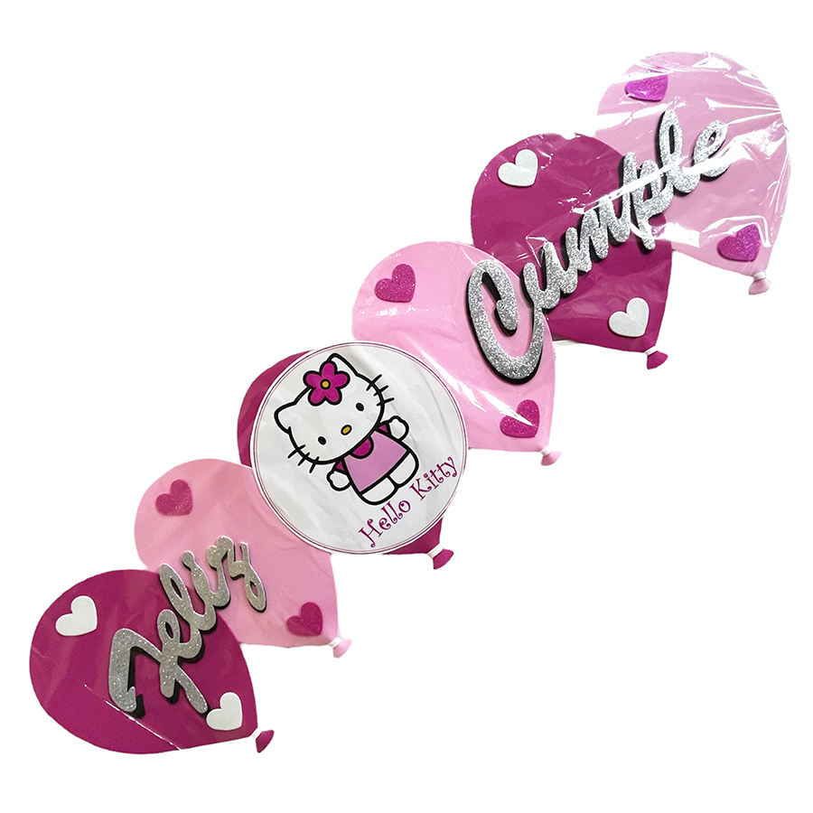Cartel Feliz Cumpleaños Goma Eva Hello Kitty Material: Goma Eva Medida total: 90 x 26 cm aproximadamente Incluye «cintas» de Goma Eva (Ver foto)