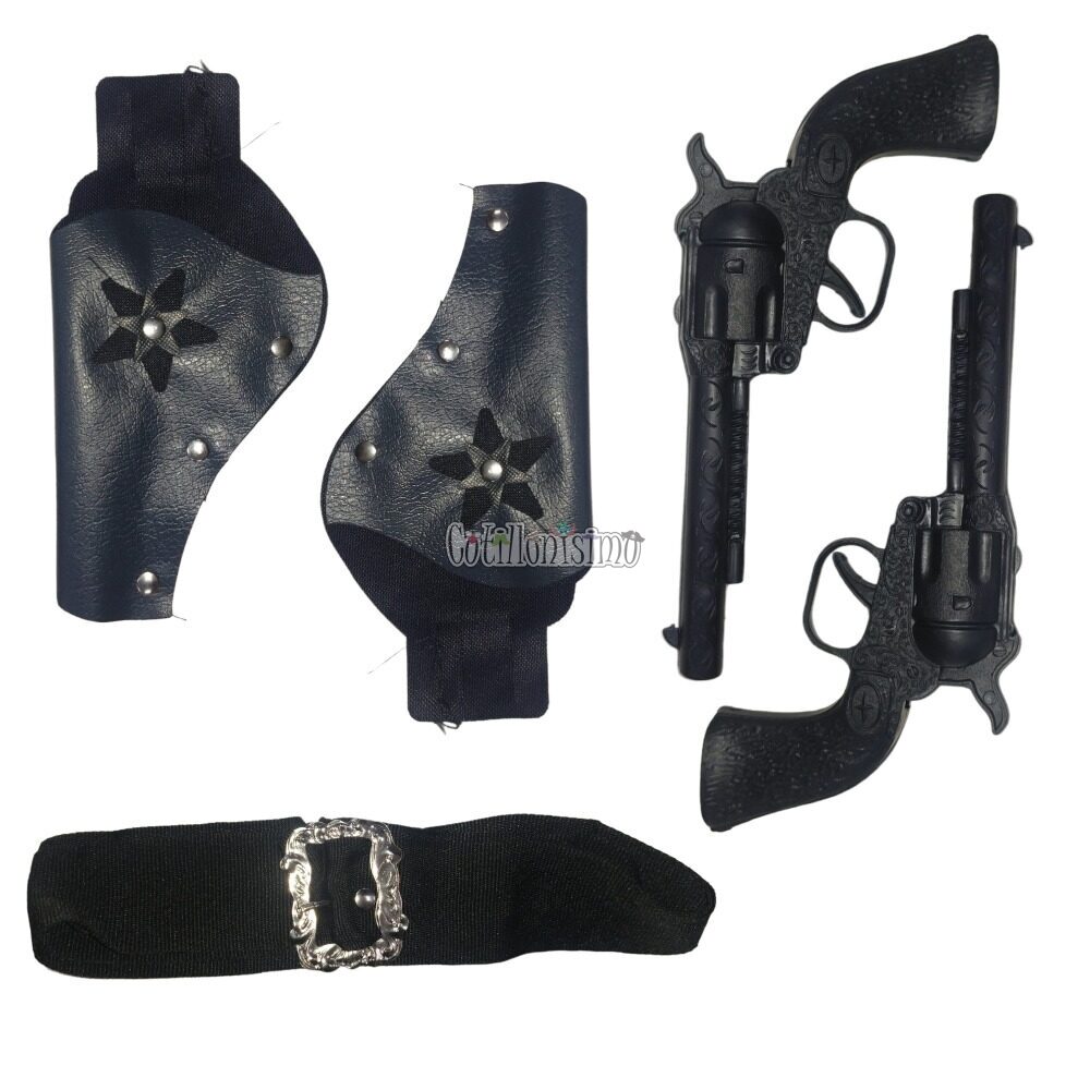 Cartuchera – Estuche Sheriff / Cowboy / Vaquero con Cinturón y Revolver / Pistola Doble (Dos cartucheras y dos armas, una correa)