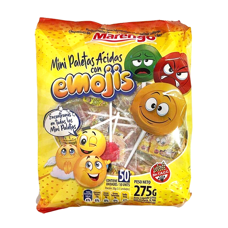 Chupetin Marengo Mini Paleta Emoji Emoticon x50 Unidades Cantidad: 50 Unidades Aprox Sabores Surtidos Ácidos Sin TACC