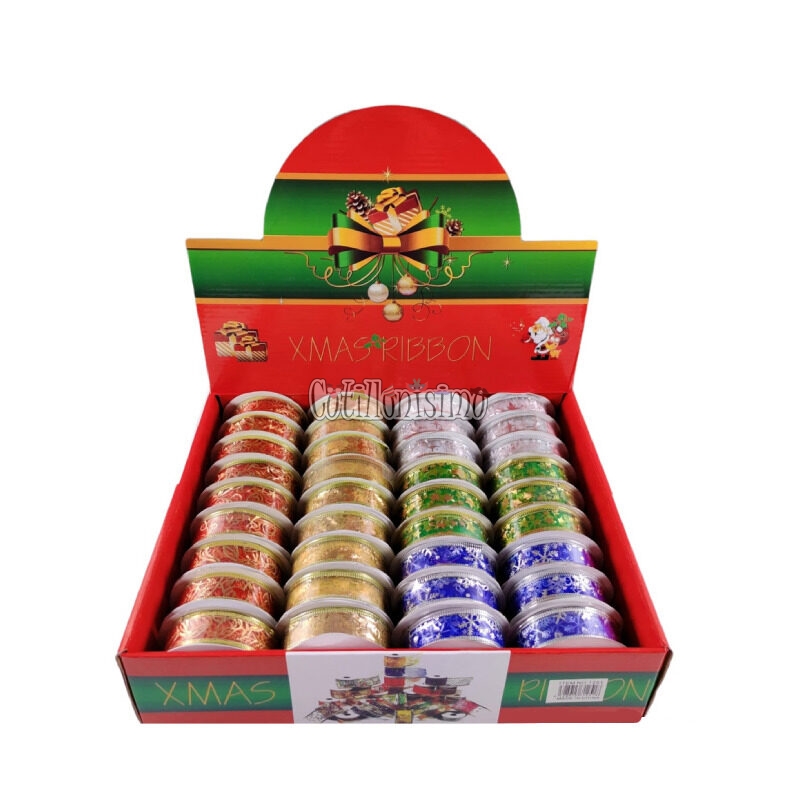 Cinta de Navidad con Alambre 3.8 cm x 2.70 mts Colores Surtidos