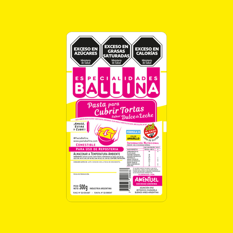 Cobertura para Torta BALLINA Color Amarillo FORMULA H 500g cantidad