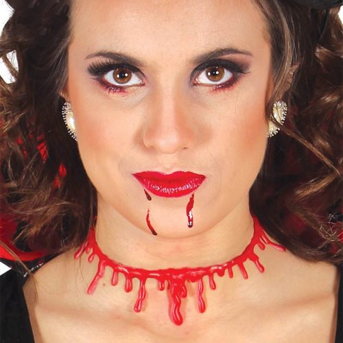 Collar Que simula Corte con Sangre para Cuello Terrorist Necklace Ideal para tu disfraz de Halloween Color: Rojo Material: Plastico / Silicona / Goma