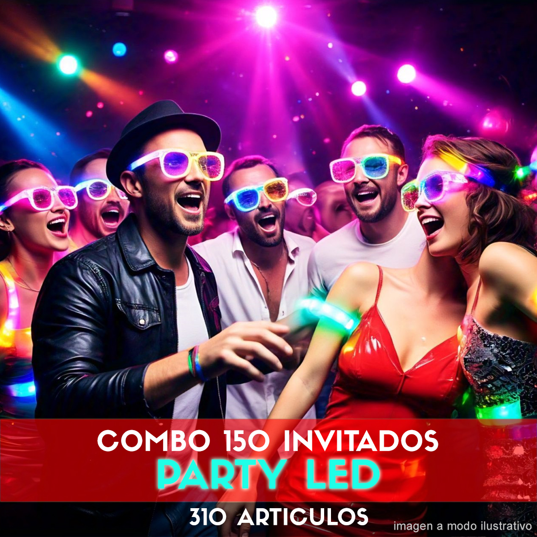 Combo Cotillón para 150 Invitados – 310 Artículos Luminosos PARTY LED (Cantidades Variables)