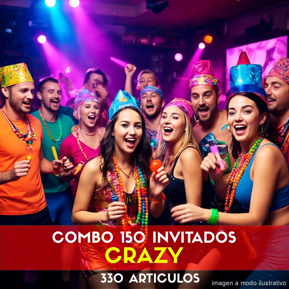 Combo Fluo Led para 150 Invitados (aproximadamente) con 330 artículos – Cantidades Variables – Versión Surtido Fiesta Luminoso LED Luces Crazy Loco