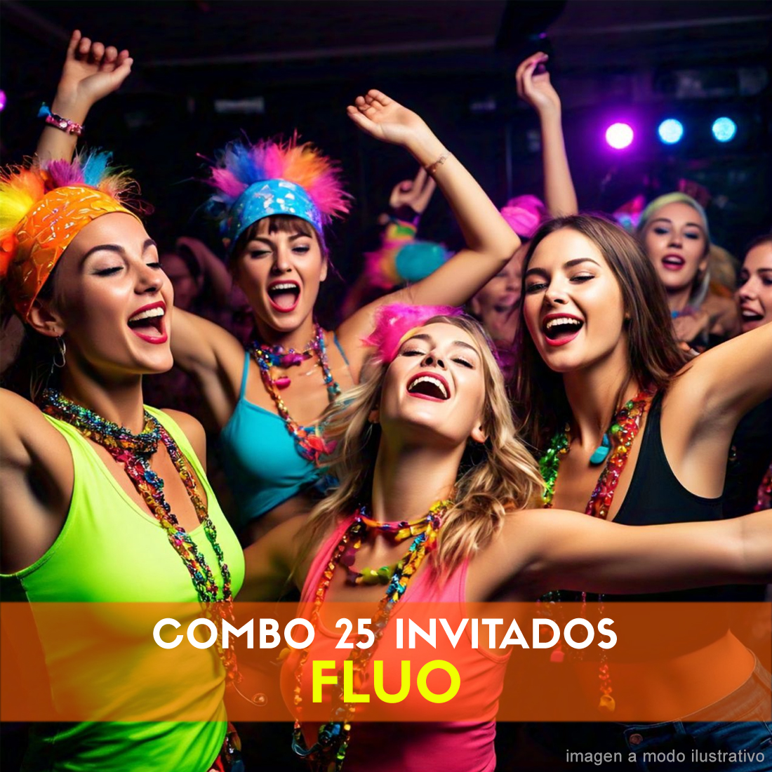 Combo de Cotillón para 25 Invitados (aproximadamente) con mayoría de productos FLUO – Cantidades Variables – Versión Premium