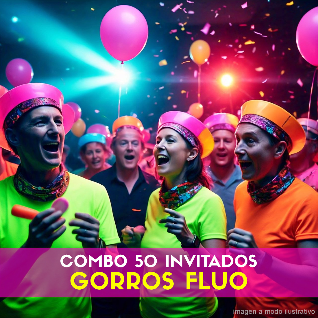 Combo Cotillón para 50 Invitados – GORROS FLUO (Cantidades Variables)