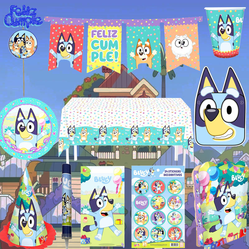 Combo Decorativo Temático Para Cumpleaños Infantil – BLUEY – 15 Invitados