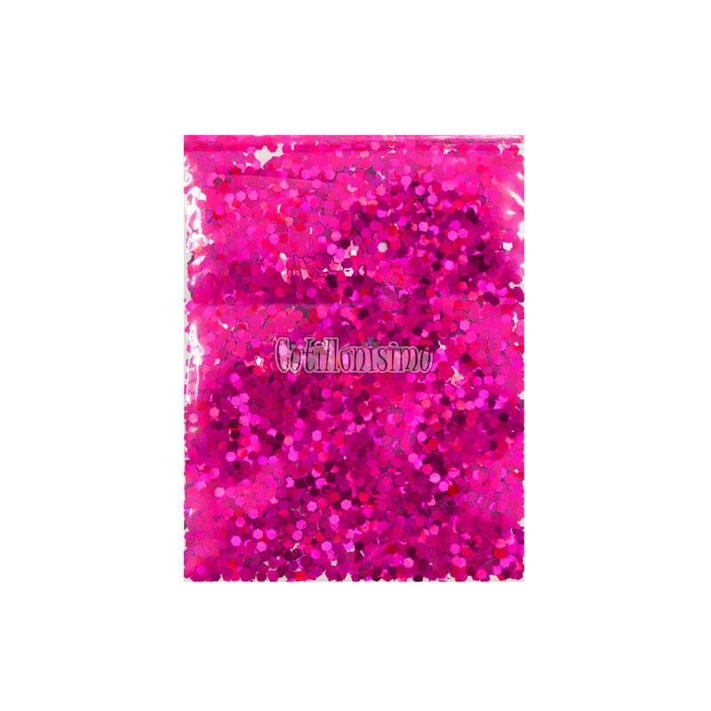 Confetti Mini Hexagonal Fucsia x10 Gramos cantidad