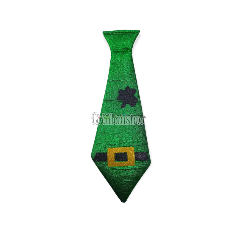Corbata Verde con Trébol San Patricio Lamé Cinturón – Hebilla Medidas Aproximadas: 43 cm de largo x 14 cm de ancho