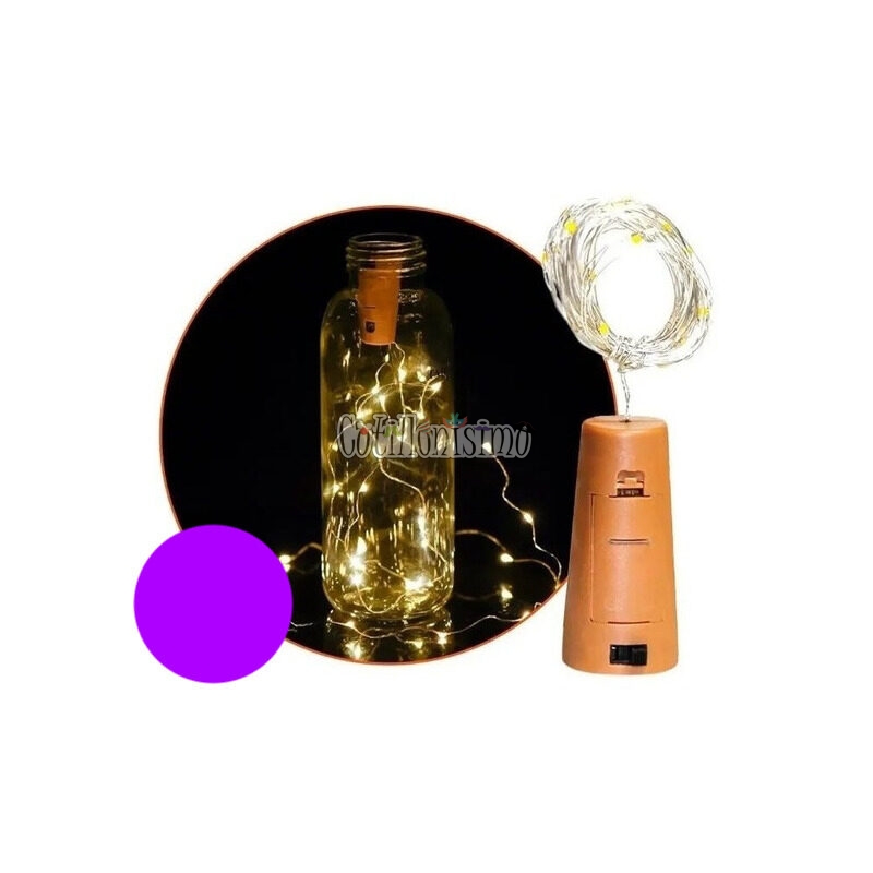 Corcho Tapón Guirnalda Alambre Tira Led Color Lila Medida aproximada: 1,90cm