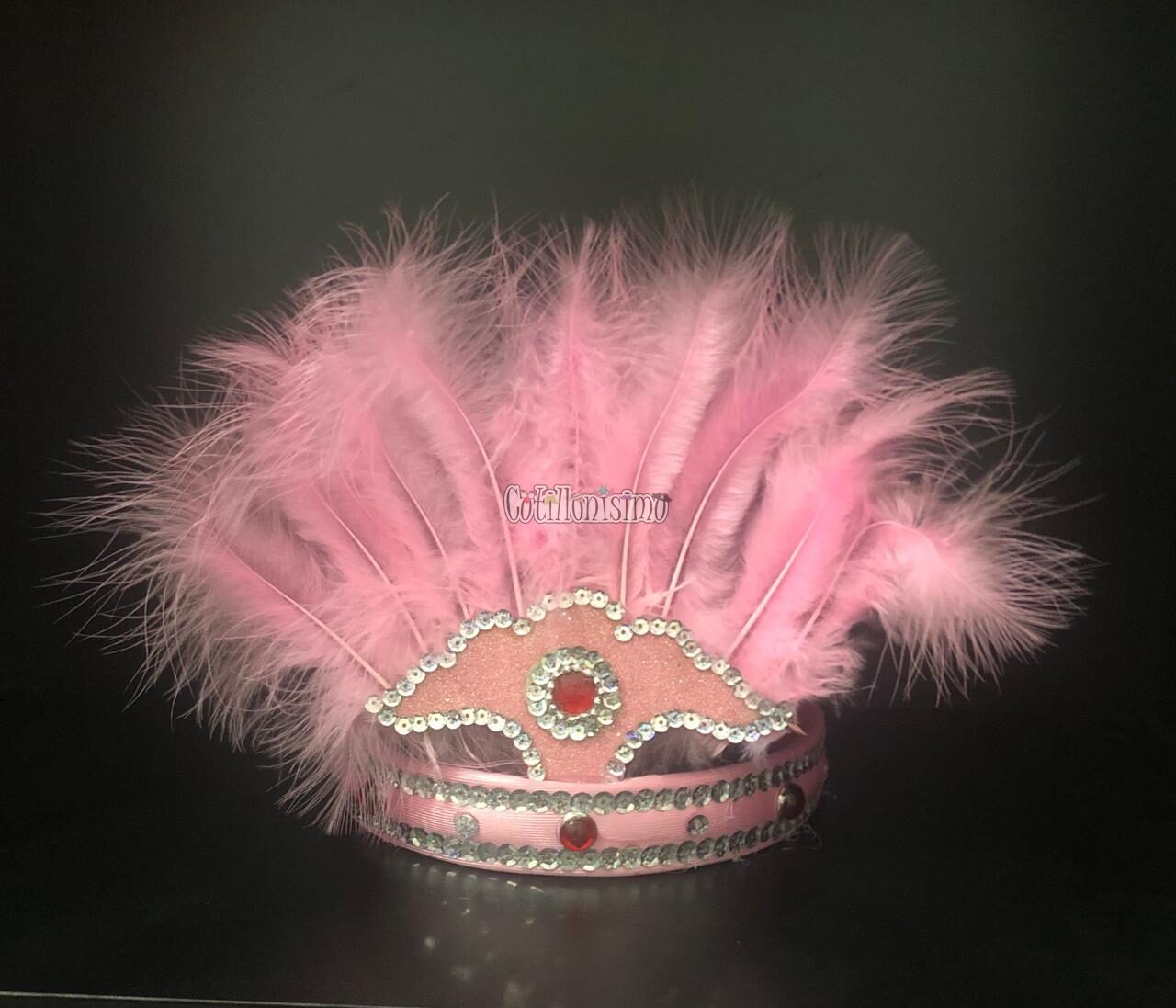 Corona Con Plumas Color ROSA (Chica) cantidad