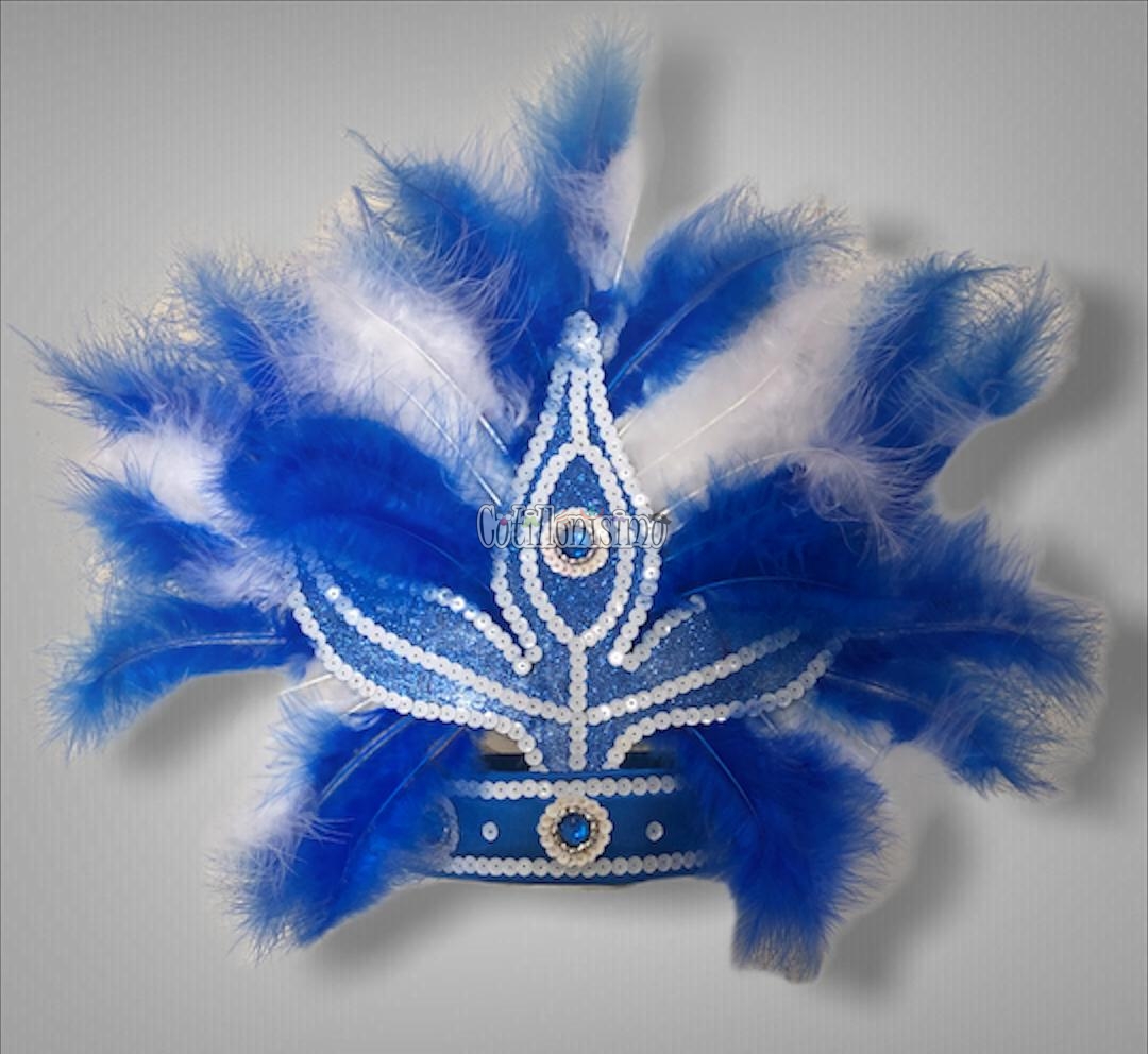 Corona Con Plumas Vincha Marabu Color AZUL y BLANCO (Grande)