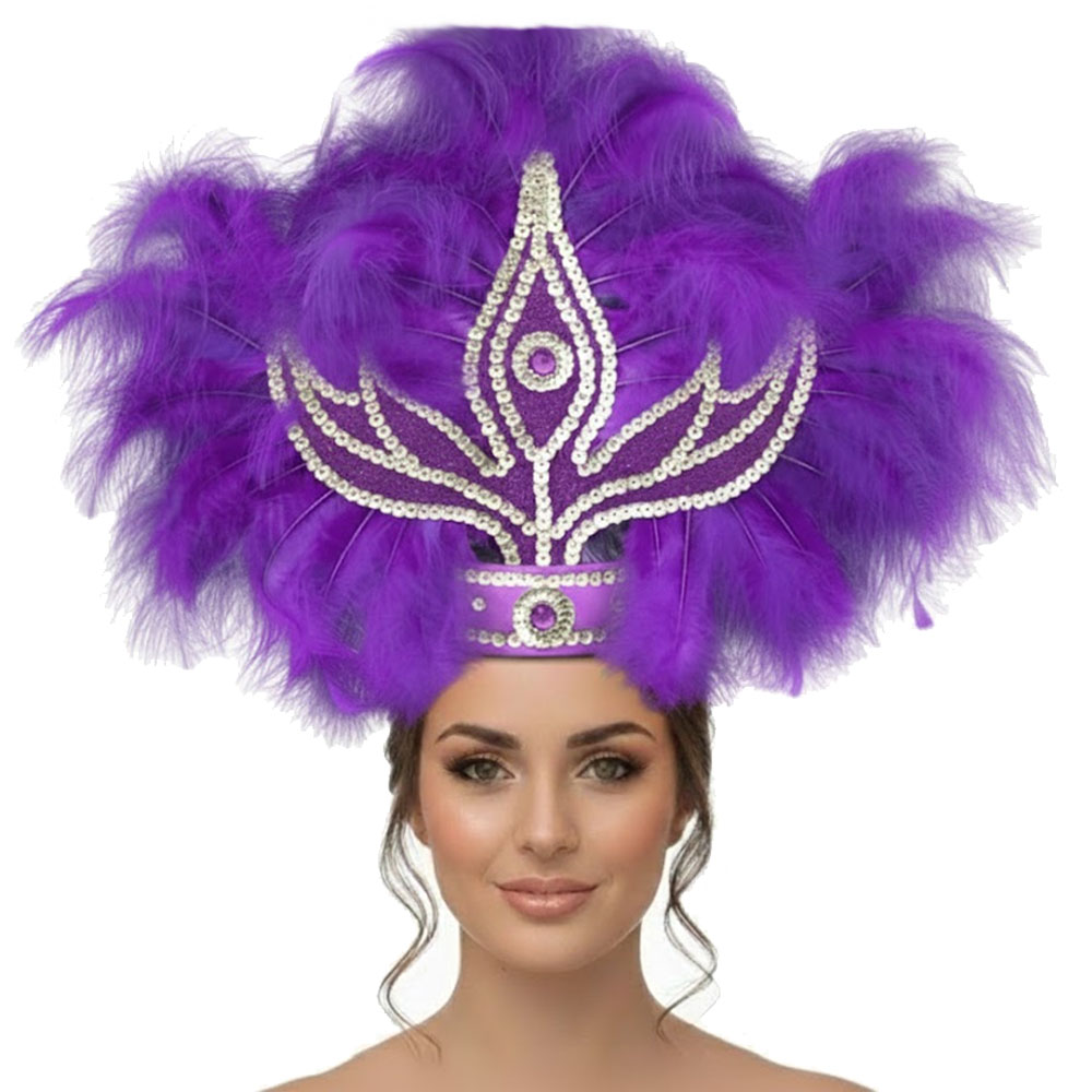Corona Con Plumas Vincha Marabu Color VIOLETA (Grande) cantidad