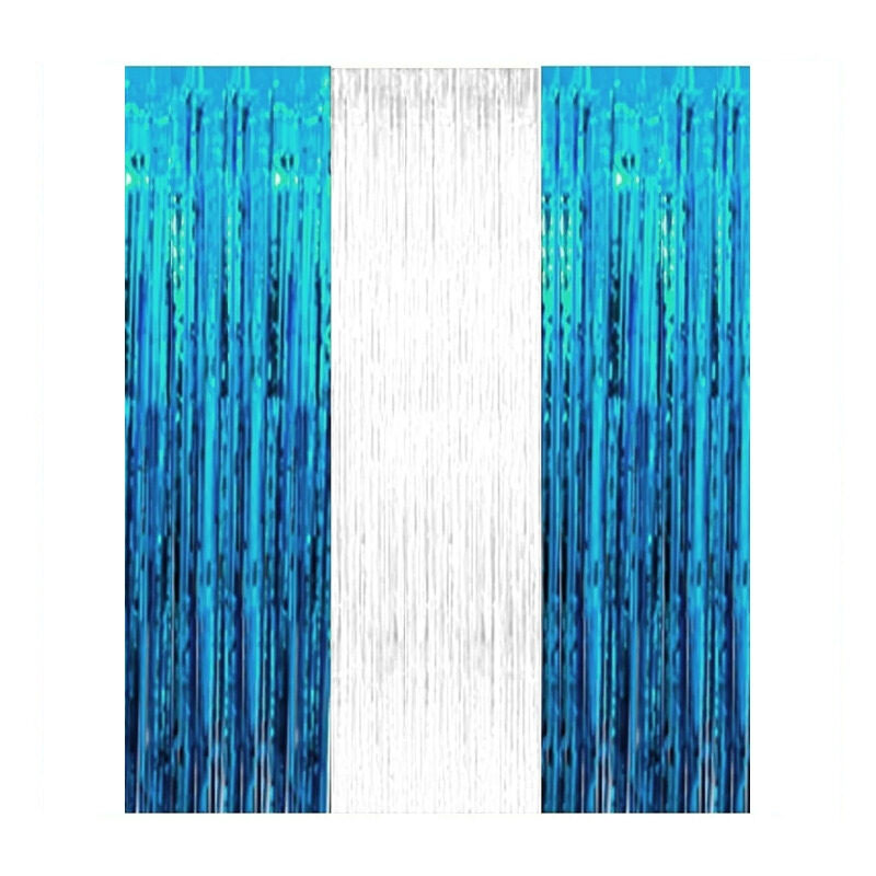 Cortina Lluvia Metalizada Bicolor Celeste y Blanco 2 x 1 Mts