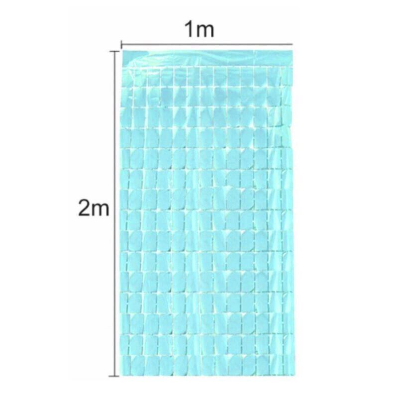 Cortina Lluvia SHIMMER Metalizada Paneles Cuadrados Celeste Pastel 2 X 1 Mts