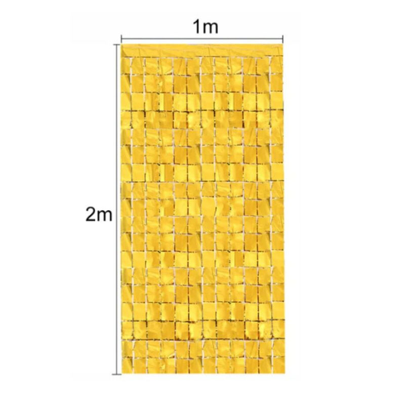 Cortina Lluvia Metalizada Paneles Cuadrados Dorado 2 X 1 Mts