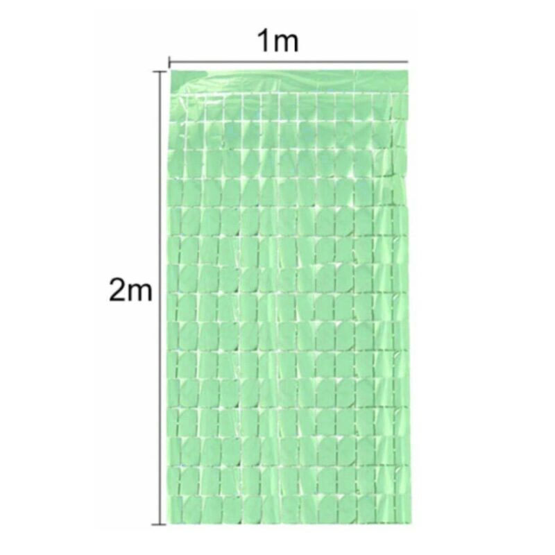 Cortina Lluvia SHIMMER Metalizada Paneles Cuadrados Verde Pastel 2 X 1 Mts