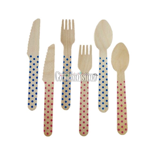 Cubiertos de Madera Cuchillo Tenedor Cuchara Descartables con Lunares – Rayados x1u