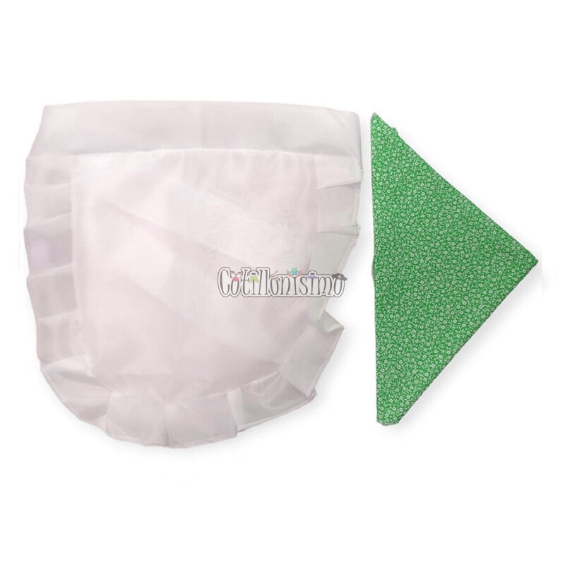 Medidas aproximadas: 27 cm x 82 cm (pañuelo) x 27 x 26 cm (delantal)