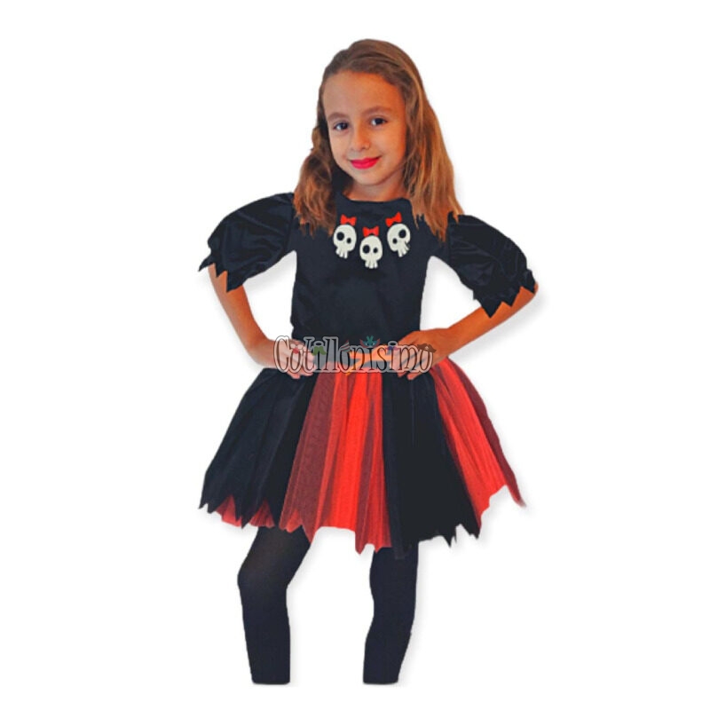 Disfraz BRUJITA Con TUL FLUO y CALAVERAS Talle 1 Crosti