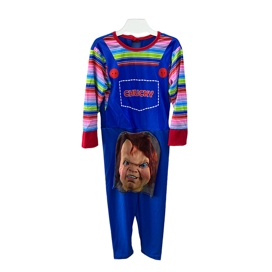 Disfraz de Chuky Muñeco Maldito con Máscara Halloween Medidas y talles aproximados: Talle: 1 (3 a 4 Años) Ancho: 30 cm Largo: 87 cm Talle: 2 (5 a 7 Años) Ancho: 34 cm Largo: 94 cm Talle: 3 (8 a 10 Años) Ancho: 36 cm Largo: 95 cm