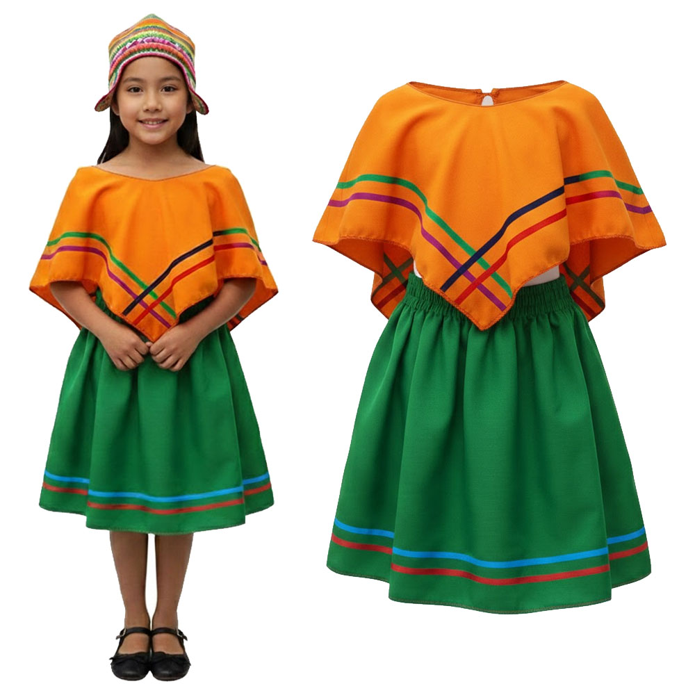 Medidas aproximadas: 82 cm x 41 cm (poncho) – 30 cm x 43 cm (pollera – incluye elastico)