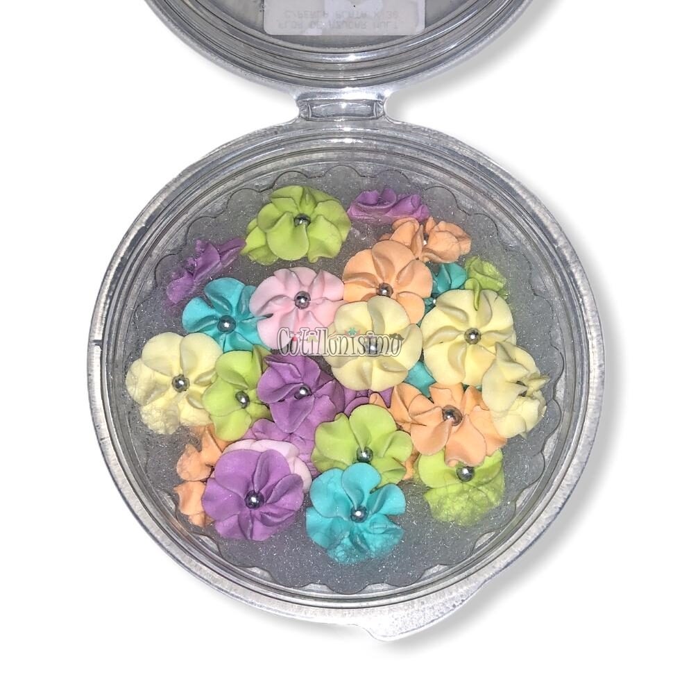 Flor de Azucar Multicolor Con Perla Plateada X30 Unidades
