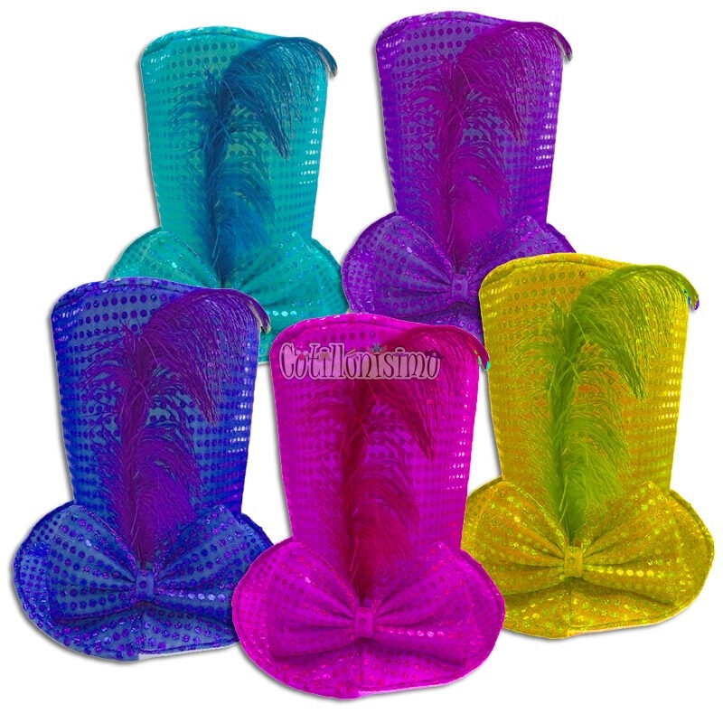 Galera Lentejuela con Moño y Pluma Colores Surtidos