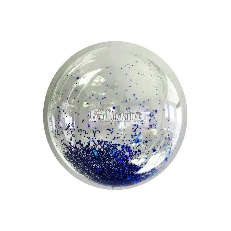 Globo Burbuja con Confetti Hexagonal Azul 46cm Tamaño aproximado: 18 pulgadas (46 cm)