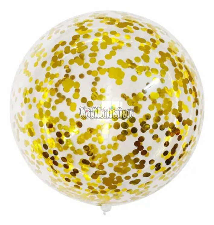 Globo Burbuja con Confetti Redondo Metalizado Dorado 45 cm Tamaño aproximado: 18 pulgadas (45 cm)