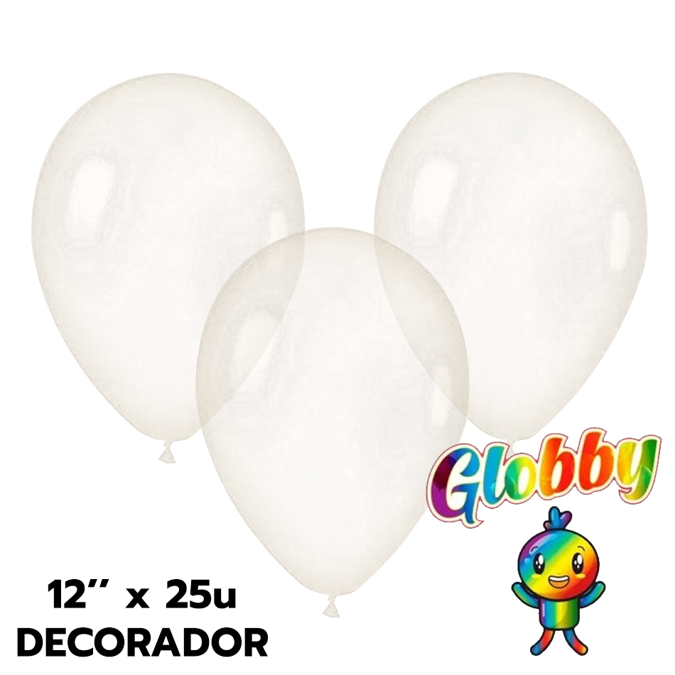 / Globo Globby Liso Decorador 12 Pulgadas Transparente x25u