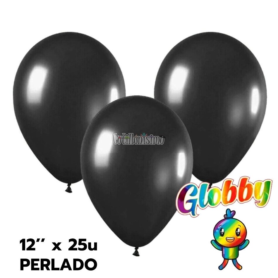 Globo Globby Liso Metalizado Perlado 12 Pulgadas Negro x25u cantidad