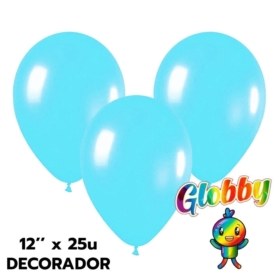 / Globo Globby Liso Pastel 12 Pulgadas Azul Mora x25u