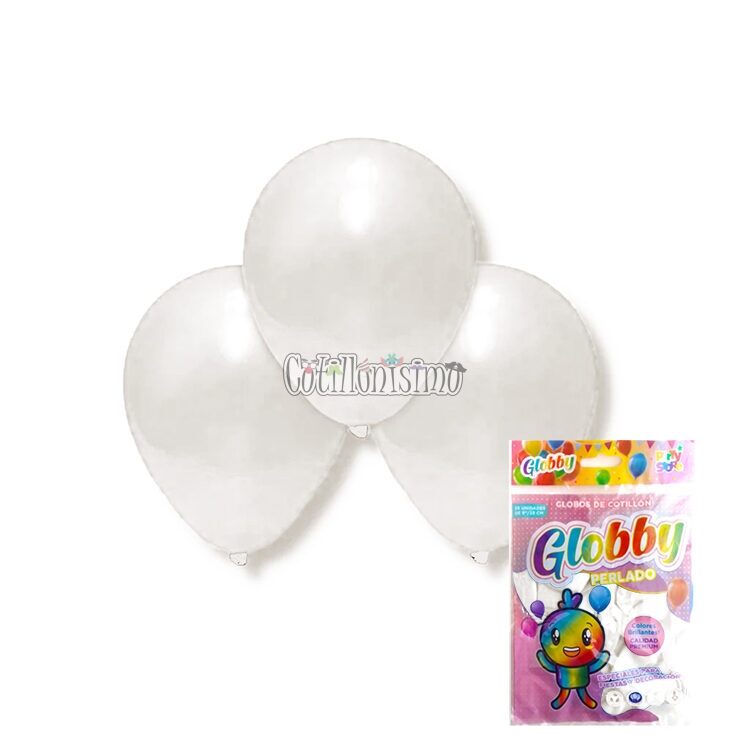Globo Globby Perlado 9 Pulgadas Blanco x25u cantidad
