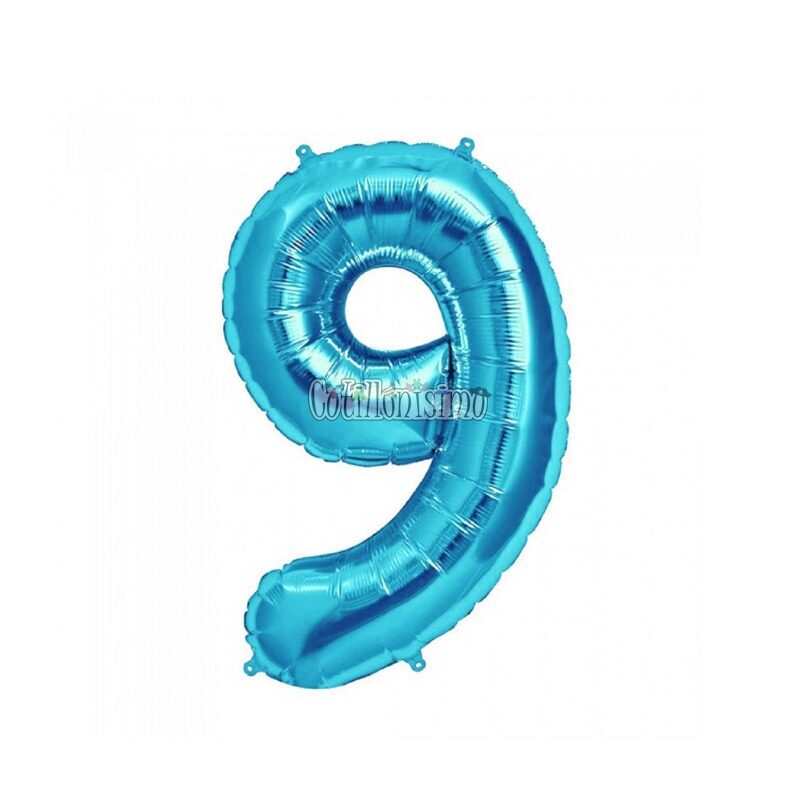 Globo Numero “9” Celeste Metalizado 40cm / 16» – 16 Pulgadas Material: Foil Metalizado. Numero: “9” Color: Celeste Metalizado Tamaño: 40 cm / Chico / 16 Pulgadas Los Globos se entregan desinflados.