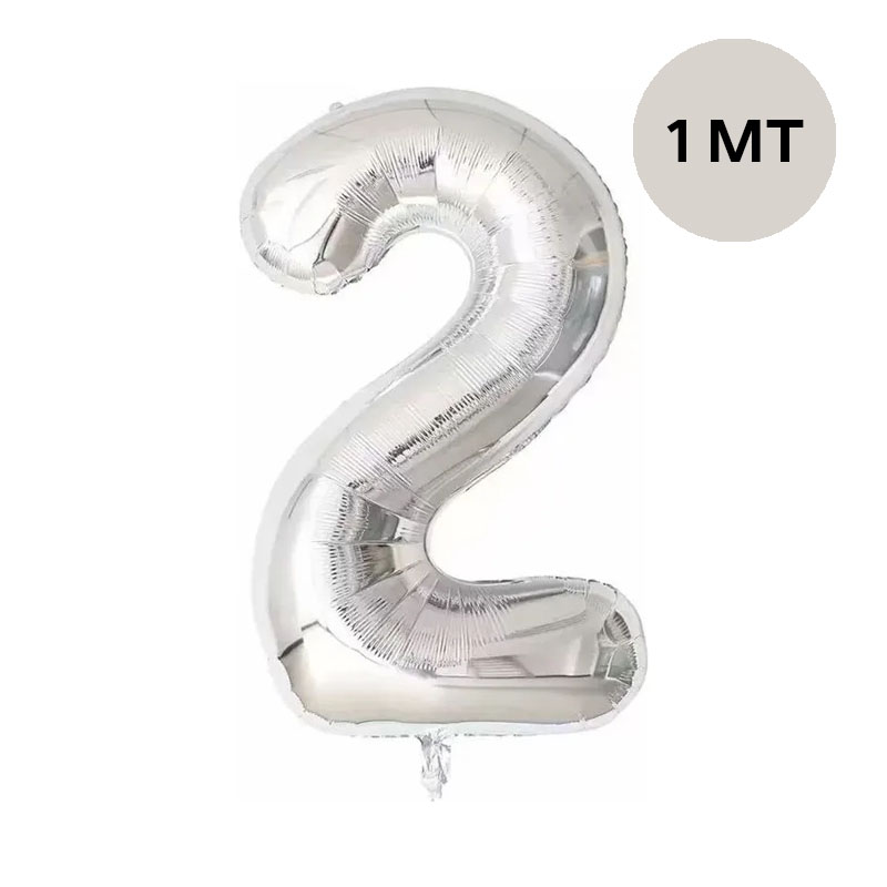 Globo Numero Inflable 2 Plateado 1mts De Alto