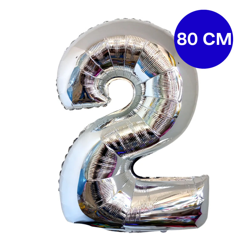 Globo Numero Inflable 2 Plateado 80cm De Alto