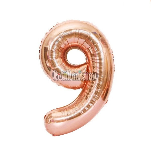 Globo Numero Inflable “9” Rosa Gold 80cm Material: Foil Metalizado. Numero: “9” Color: Rosa Gold Medida: 80 cm aprox. Los Globos se entregan desinflados.