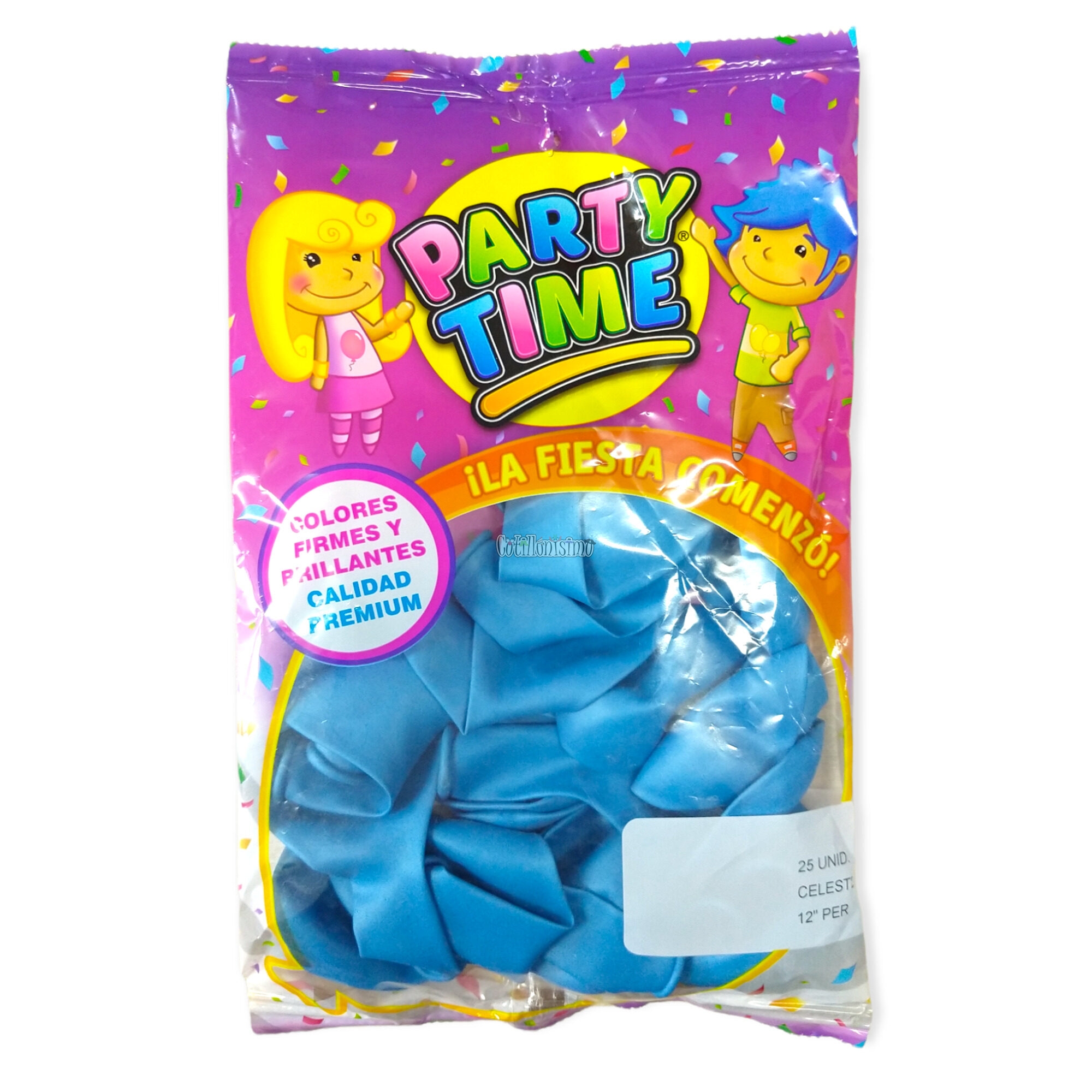 / Globo Party Time Perlado 12 Pulgadas Celeste x25u