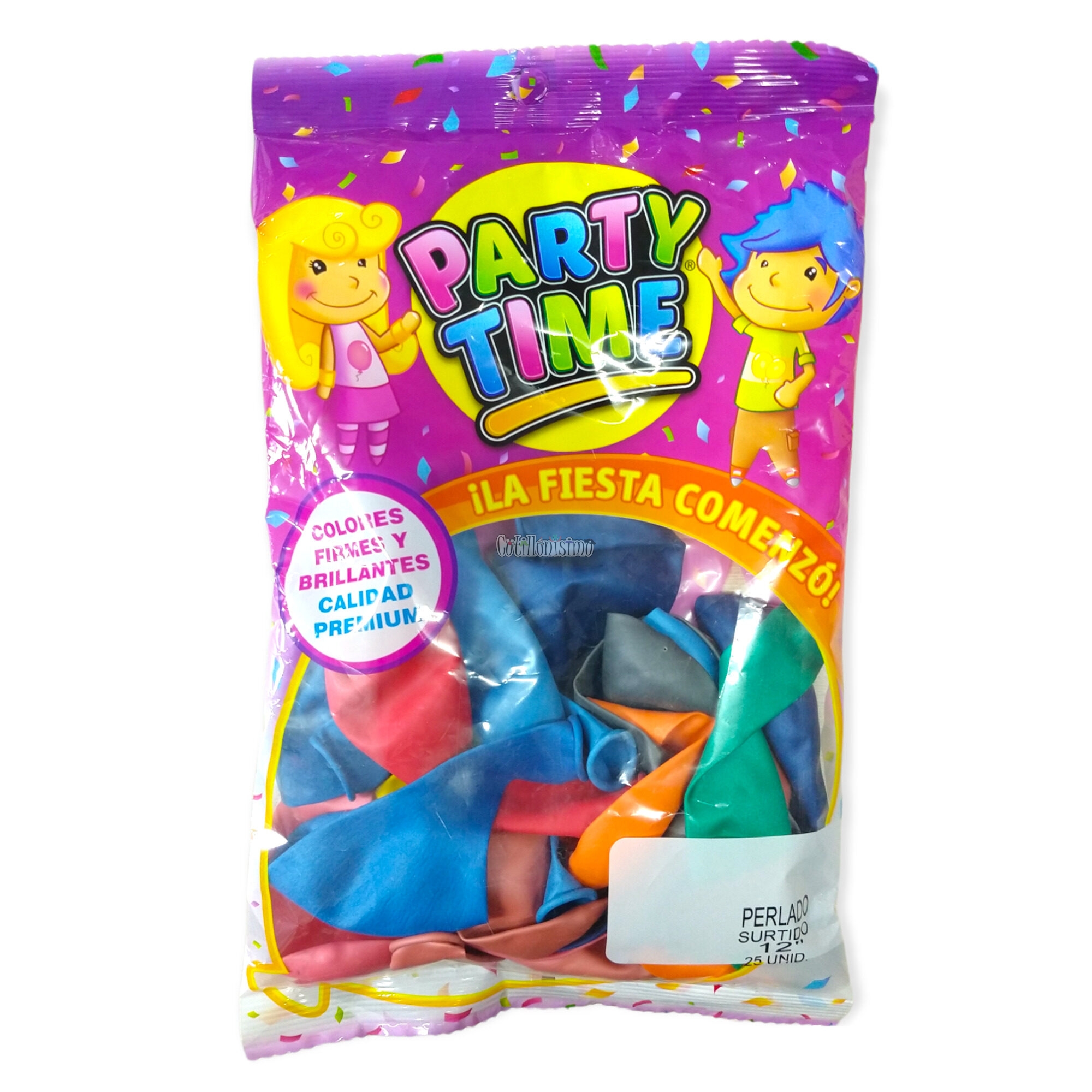 Globo Party Time Perlado 12” Multicolor Colores Surtidos x25u Tu Decorador Profesional! Material: Latex Producto de la Compañia DILAX