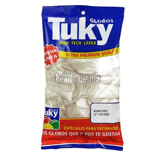 Globo Tuky Liso Perlado 12” Blanco x25u Material: Latex