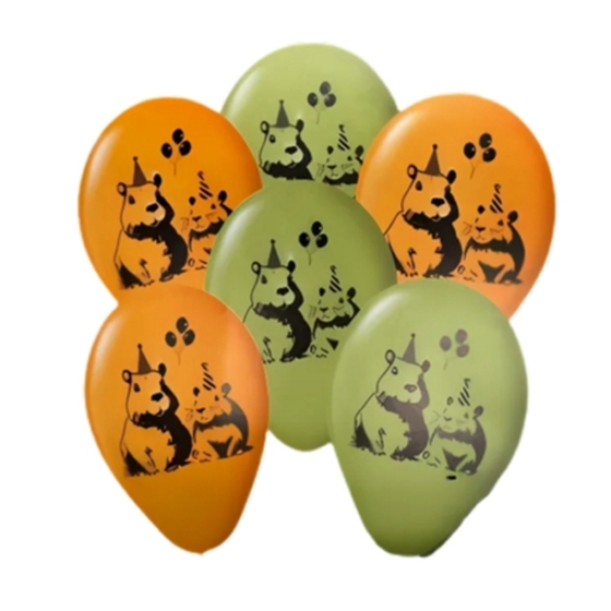 Seis Unidades de Globos de Latex 12 Pulgadas Premium Estampados Temática Capibara Carpincho