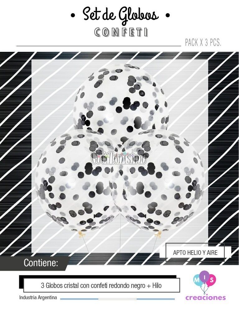 Globos con Confetti Redondo – Color NEGRO x3 Unidades Contiene 3 Globos CRISTAL con Confetti en su interior.