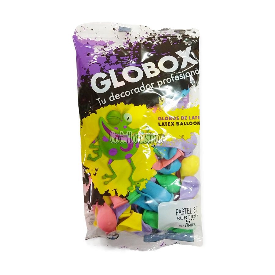Globos Globox 5” Lisos Colores Surtidos Pastel x50u Tu Decorador Profesional! Material: Latex Producto de la Compañia DILAX